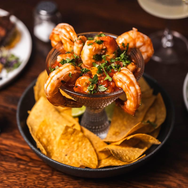 Chilled tender shrimp red tomato, avocado, red onion light spiced sauce