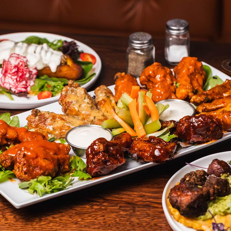 Choose between bbq, buffalo, honey jack, garlic parm, lemon pepper, sweet chilli or naked